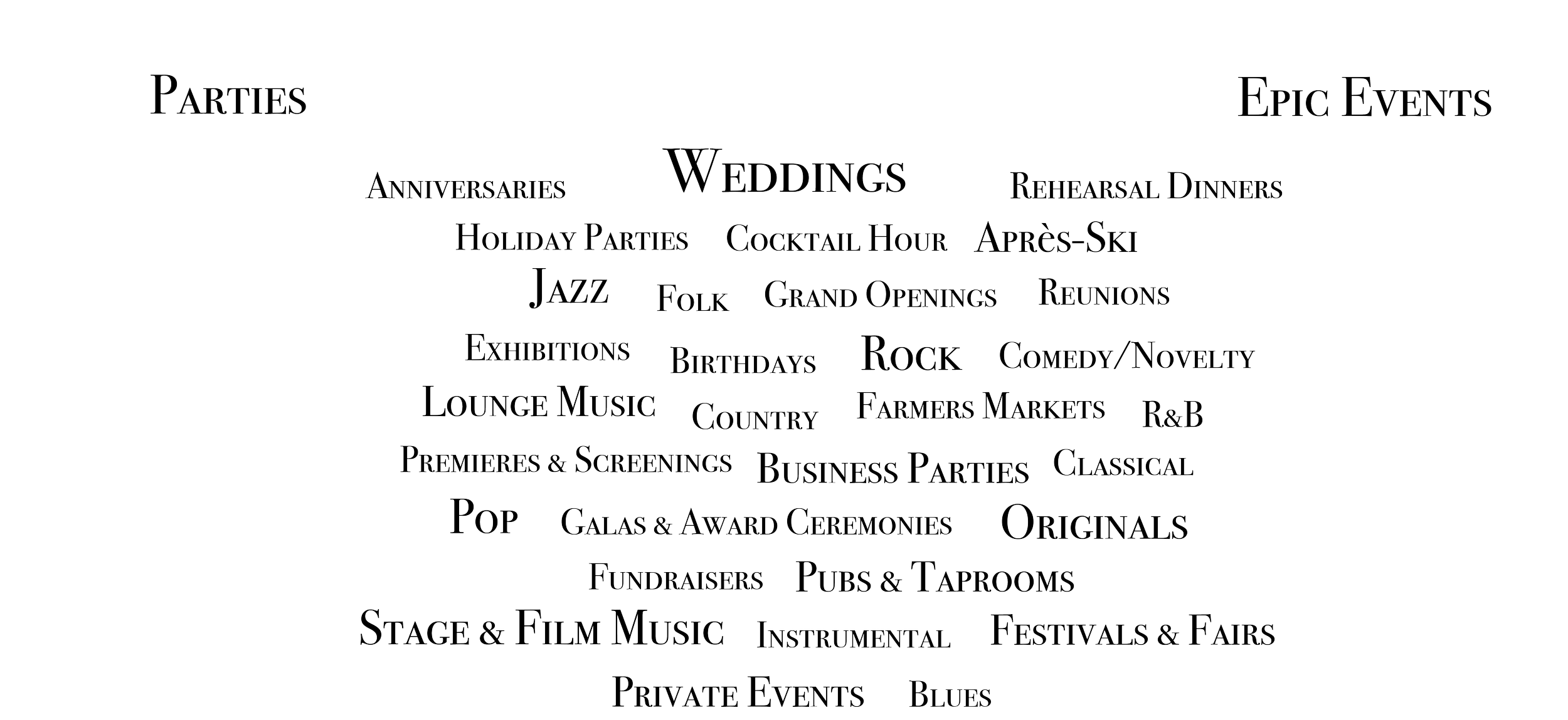 As longtime artists, we know that all events are different. Let us work with you to create the performance style you’re looking for - consult with us today for free about your event and we’ll discover a rate that works for everyone.